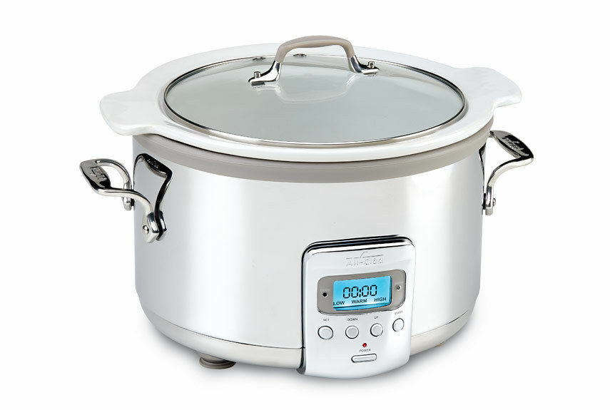 The insert has completely cracked and i m unable to find a replacement due to the circle shape and quart size. More buying choices 119 99 4 used new offers all clad 7 qt gourmet slow cooker with all in one. All clad sd700450 programmable oval shaped slow cooker with black ceramic insert and glass lid 6 5 quart silver 4 4 out of 5 stars 676 179 95 179. All clad slow cooker with ceramic.