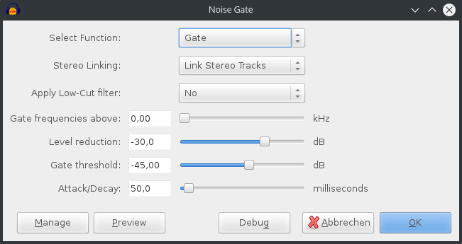 Show audacity a noise profile a short section of audio containing only the noise to be reduced. Audacity is a free open source audio recording and editing programme. Our goal is to get a noise floor at or below 60db. If you can t achieve that do your best to get a number as low as possible.